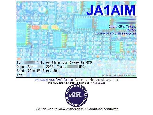 視聴し終えて、さっそく冒頭の局長さんにeQSLをお送りしておきました。便利な時代になりましたねぇ!