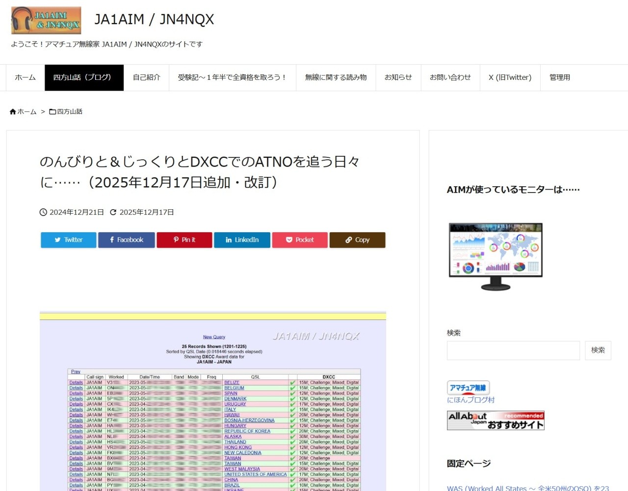 ちょうど一年前に書いた「のんびりと&じっくりとDXCCでのATNOを追う日々に……」という記事です(こちら)。